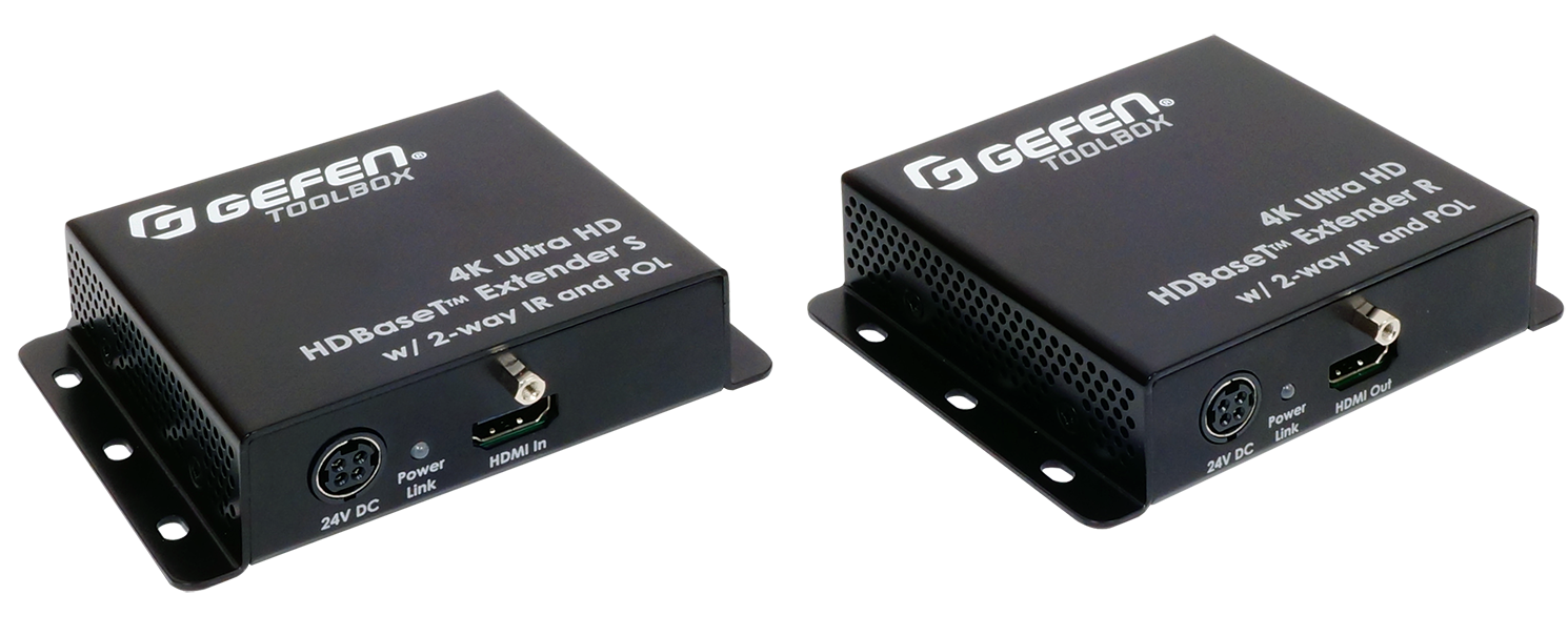 The GTB-UHD-HBTL 4K Ultra HD Extender uses Gefen’s implementation of the HDBaseT™ technology to extend HDMI up to 230 feet/70 meters at 1080p and up to 130 feet/40 meters at 4K, using one CAT-5e or better cable. Resolutions up to 4K Ultra HD (3840 x 2160 @ 60 Hz 4:2:0) with 7.1 channels of HBR (High Bit Rate) lossless digital audio are supported. This product provides 2-way IR extension between the Sender and the Receiver units, facilitating the control of A/V sources placed near the Sender unit and sending automation commands to the display or another device placed near the Receiver unit. Gefen’s Bi-Directional POL (Power Over Line) technology powers the Sender or the Receiver unit using the same cable that extends the HDMI signal. Only one of the two units will need a power supply. This feature simplifies installation in cases when an electrical outlet may not be available near the source or the display. Small, low profile enclosures can be securely surface-mounted and conveniently hidden away from sight.