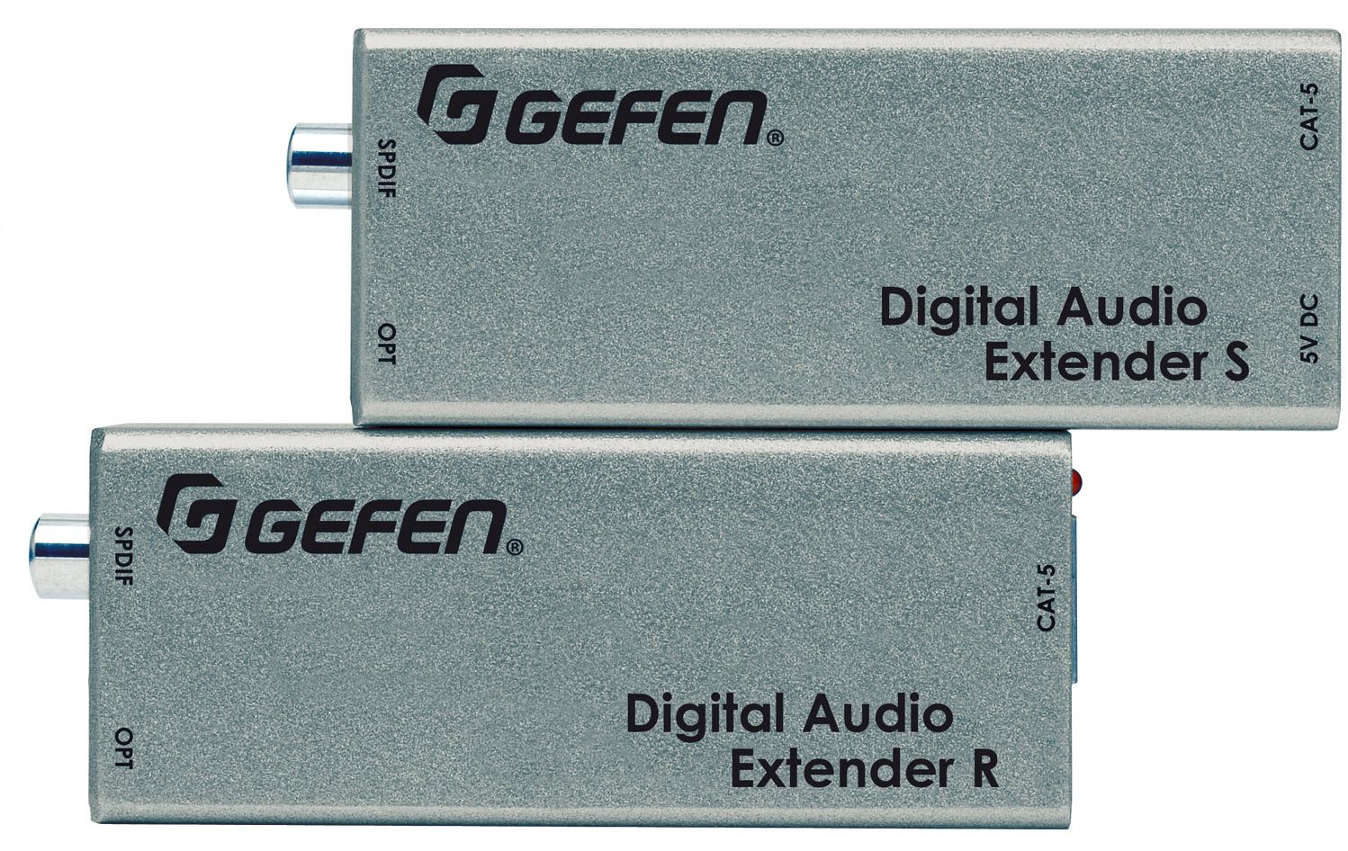 The Gefen EXT-DIGAUD-141 Digital Audio Extender over CAT-5 Extender allows you to place your digital audio components anywhere you want. It supports either S/PDIF or TOSLINK® digital audio signals, which are commonly used to transmit stereo and multichannel digital audio like Dolby Digital® 5.1, DTS, and Dolby® True HD. The Digital Audio Extender uses a Sender and Receiver system connected by a CAT-5e cable to extend the digital audio.Read More