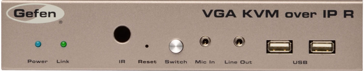 Extends VGA, USB, RS-232, bi-directional stereo analog audio, and IR over IP, using a Gigabit Local Area Network